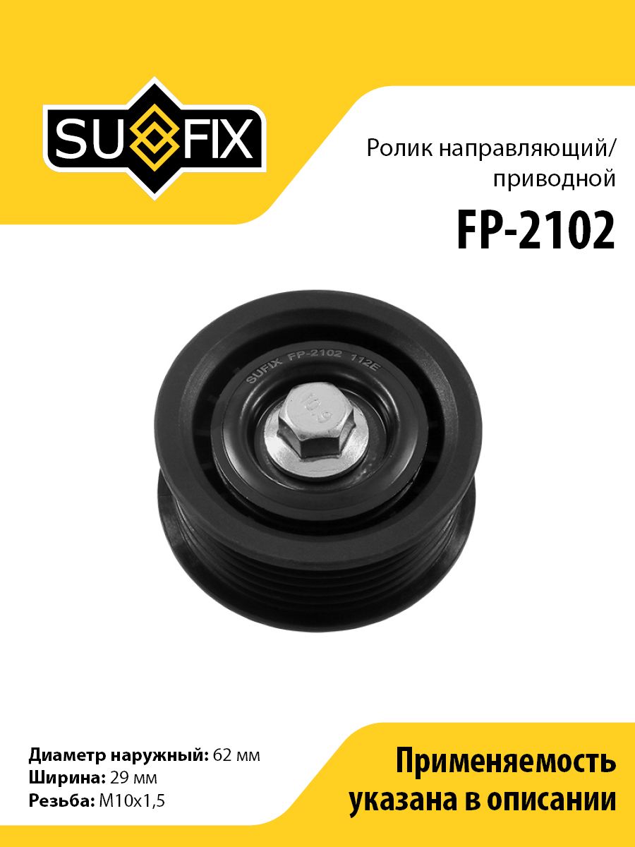 Ролик направляющий/приводной SUFIX FP-2102. Применение: HYUNDAI ix35 2.0 10>/Santa Fe(DM) 2.4 12>/Sonata(YF) 2.0-2.4 09>, KIA Sportage(SL) 2.0 10>/Cerato/Spectra(TD) 2.0 09>/Optima 2.0-2.4 12>/Sorento II 2.4 12>.