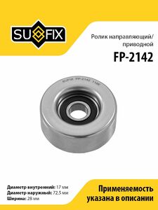 Ролик направляющий/приводной SUFIX FP-2142. Применение: MAZDA 2(DE) 1.3-1.5 07>/3(BK-M) 1.4-1.6 04>.