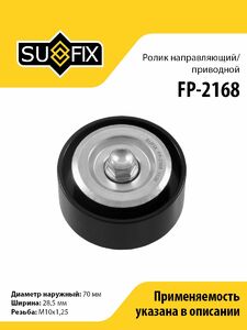 Ролик направляющий/приводной SUFIX FP-2168. Применение: TOYOTA Land Cruiser Prado(120) 3.0D 00>/Dyna 2.5D-3.0D 01>/Fortuner 2.5D-3.0D 04-15/Hiace IV-IV 2.5D 01>.