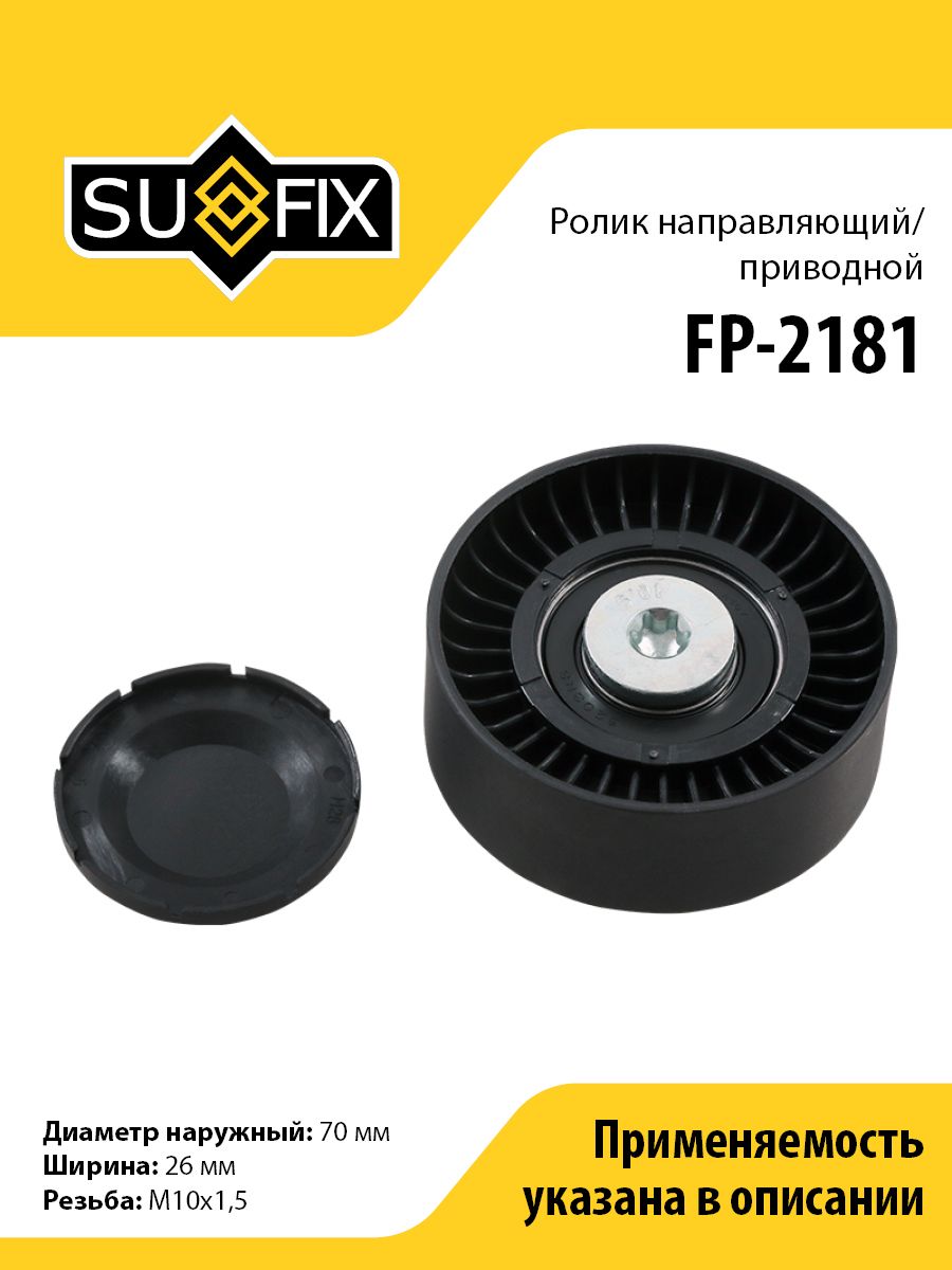 Ролик направляющий/приводной SUFIX FP-2181. Применение: BMW 5(E60/61) 4.0-5.0 03-10/6(E63/4) 4.5-5.0 04>/7(E65-7) 3.5-5.0 01>/X5(E53) 4.4-4.8 03>, SSANGYONG Actyon I 2.0D 04>/Kyron 2.0D-2.7D 05>/Rexton 2.7D 04>.