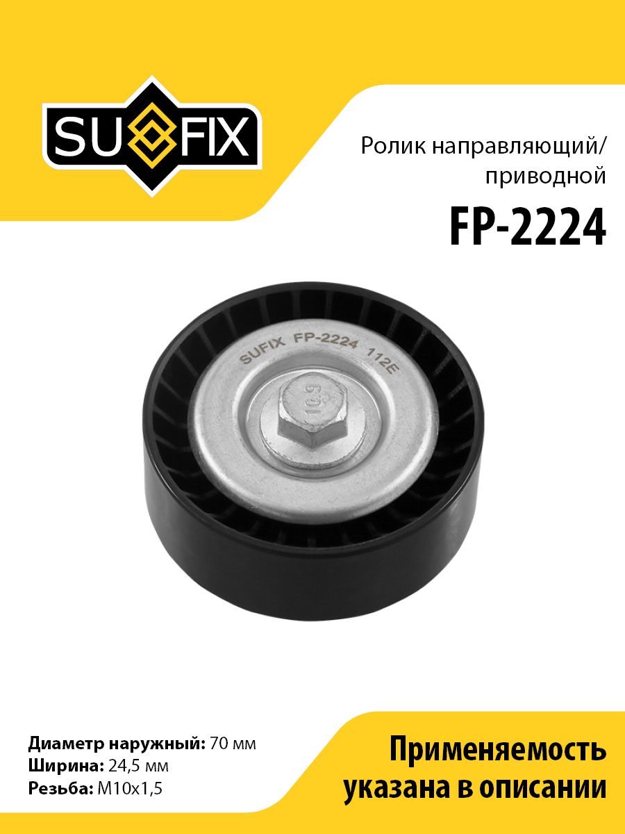 Ролик направляющий/приводной SUFIX FP-2224. Применение: MITSUBISHI ASX 1.8-2.0 10>/Lancer 1.8-2.0 08>/Outlander/Airtrek II 2.0-2.4 06-12, CITROEN C-Crosser 2.0-2.4 08>, CHRYSLER Sebring 2.0-2.4 07-10, JEEP Patriot 2.0-2.4 08>, PEUGEOT 4007 2.0-2.4 08>.