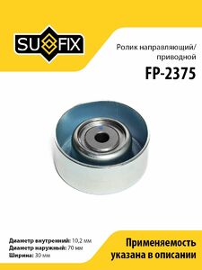 Ролик направляющий/приводной SUFIX FP-2375. Применение: MITSUBISHI ASX 2.0 10>/L200 2.4D 14>/Lancer(CY/CX) 1.8 08>/Outlander/Airtrek III 2.0-2.4 12>/Pajero Sport III 2.4D 15>.