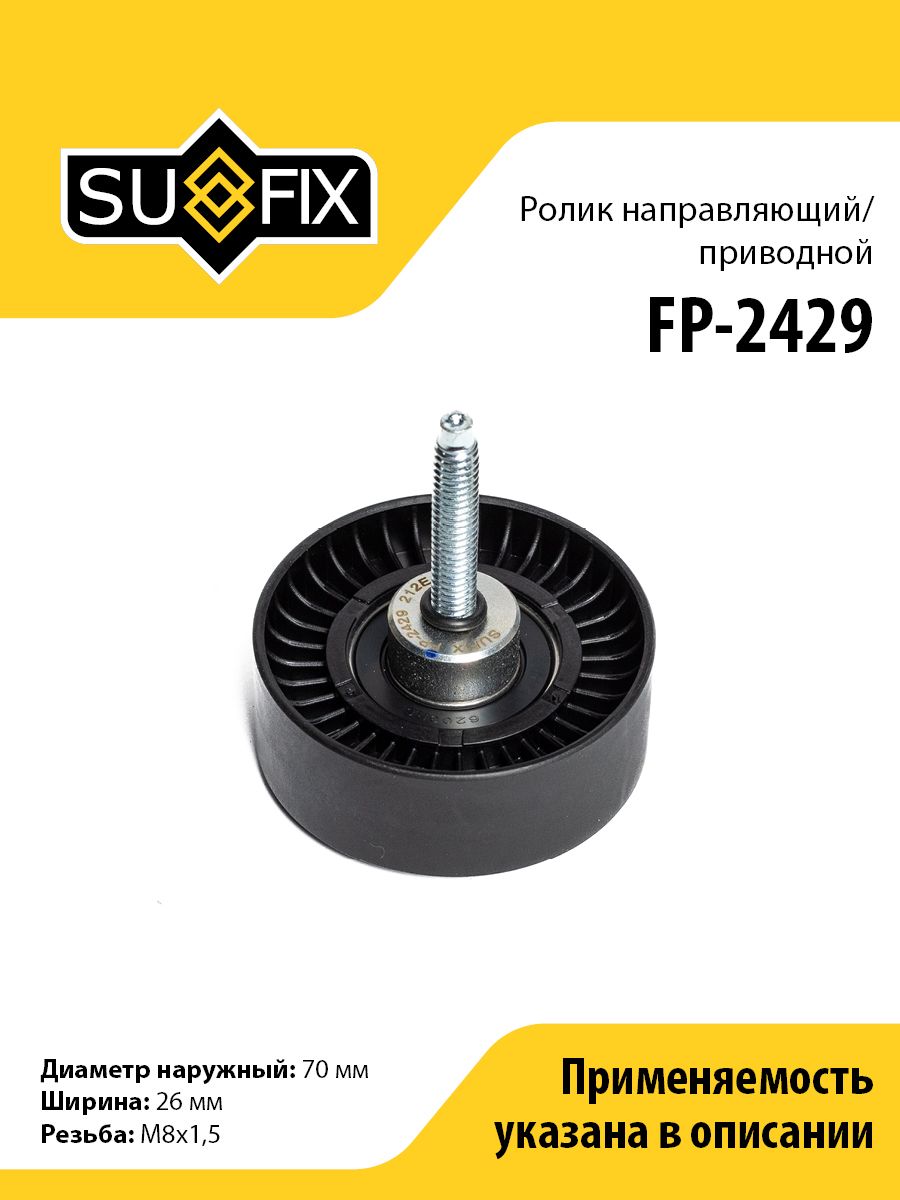 Ролик направляющий/приводной SUFIX FP-2429. Применение: FORD Mondeo III-IV 1.8-2.0 00>/Galaxy/S-Max 2.0-2.3 06-15, VOLVO S80 II 2.0-2.0D 08>.