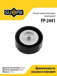 Ролик направляющий/приводной SUFIX FP-2441. Применение: FORD Mondeo III 2.0-2.2D 00-07/Transit 2.0-2.2D 06-14/Transit Custom 2.2D 12>, CITROEN Jumper 2.2HDi 06>, PEUGEOT Boxer 2.2HDi 06>, FIAT Ducato(250, 290) 2.2D 06>, JAGUAR X-Type (CF1) 2.0-2.2D 03-09.