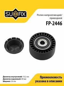 Ролик направляющий/приводной SUFIX FP-2446. Применение: CITROEN Berlingo(MF/B9) 1.1-1.6 96>/C1 II 1.2 14>/C3 II 1.0-1.2 12>/C4 I-II 1.2-1.6 04>/C-Elysse 1.2 12>, PEUGEOT 108 1.2 14>/2008 1.2 13>/206 1.1-1.6 98>/208 1.0-1.2 12>/3008 1.2 15>/301 1.2 12>/308 II 1.2 13>/5008 1.2 15>/Partner 1.1-1.6 96>.