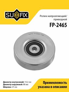 Ролик направляющий/приводной SUFIX FP-2465. Применение: TOYOTA Yaris 1.0 99-05, DAIHATSU Atrai 1.3 00>/Materia 1.3 06>/Sirion 1.3 05>/Terios 1.3 00>.