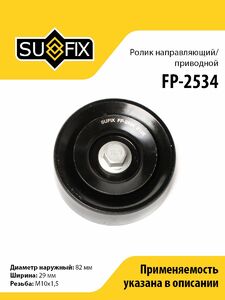 Ролик направляющий/приводной SUFIX FP-2534. Применение: HYUNDAI Santa Fe(SM/CM) 2.7 00-12, KIA Carnival III 2.7 06>/Magentis(MG) 2.7 05>.