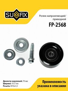 Ролик направляющий/приводной SUFIX FP-2568. Применение: NISSAN Navara(D40) 2.5D 05>/Pathfinder(R51) 2.5D 05>.