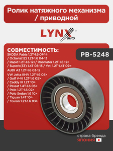 Ролик натяжного механизма / приводной LYNXauto PB-5248. Для: Audi, Ауди A3 1.2T-1.6 03-12, Skoda, Шкода, Fabia(Фабия) 1.2T-1.6 07-14 / Octavia(Октавия)(1Z) 1.2T-1.6 04-13 / Rapid(Рапид) 1.2T-1.6 12>