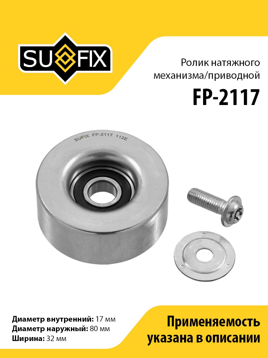 Ролик натяжного механизма/приводной SUFIX FP-2117. Применение: MITSUBISHI Pajero IV 3.8 07>/Pajero Sport II 3.0-3.5 08>.