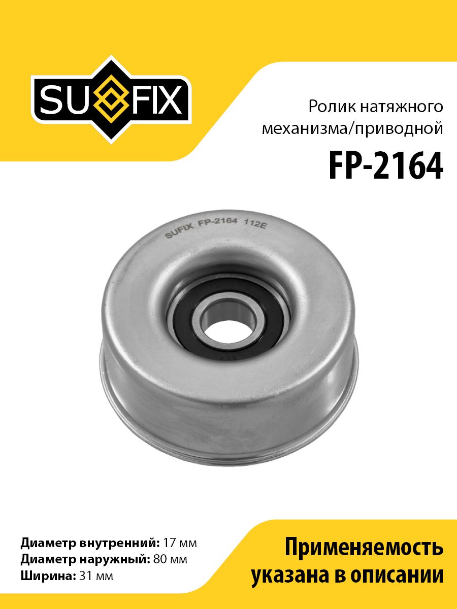 Ролик натяжного механизма/приводной SUFIX FP-2164. Применение: NISSAN Primera(P12) 2.0 02>/Teana(J31) 2.0 03-06/X-Trail(T31) 2.0-2.5 01>, RENAULT Koleos 2.5 08>.