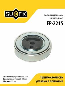Ролик натяжной/приводной SUFIX FP-2215. Применение: SUZUKI Grand Vitara II 1.6 05>/Liana 1.3-1.6 02>/Jimny 1.3 01>, SUBARU Justy 1.3 03>.