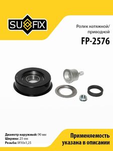 Ролик натяжной/приводной SUFIX FP-2576. Применение: HYUNDAI Sonata(EF) 2.0-2.4 98>, KIA Magentis(GD) 2.0 01>/Sorento(JC) 2.4 02>.