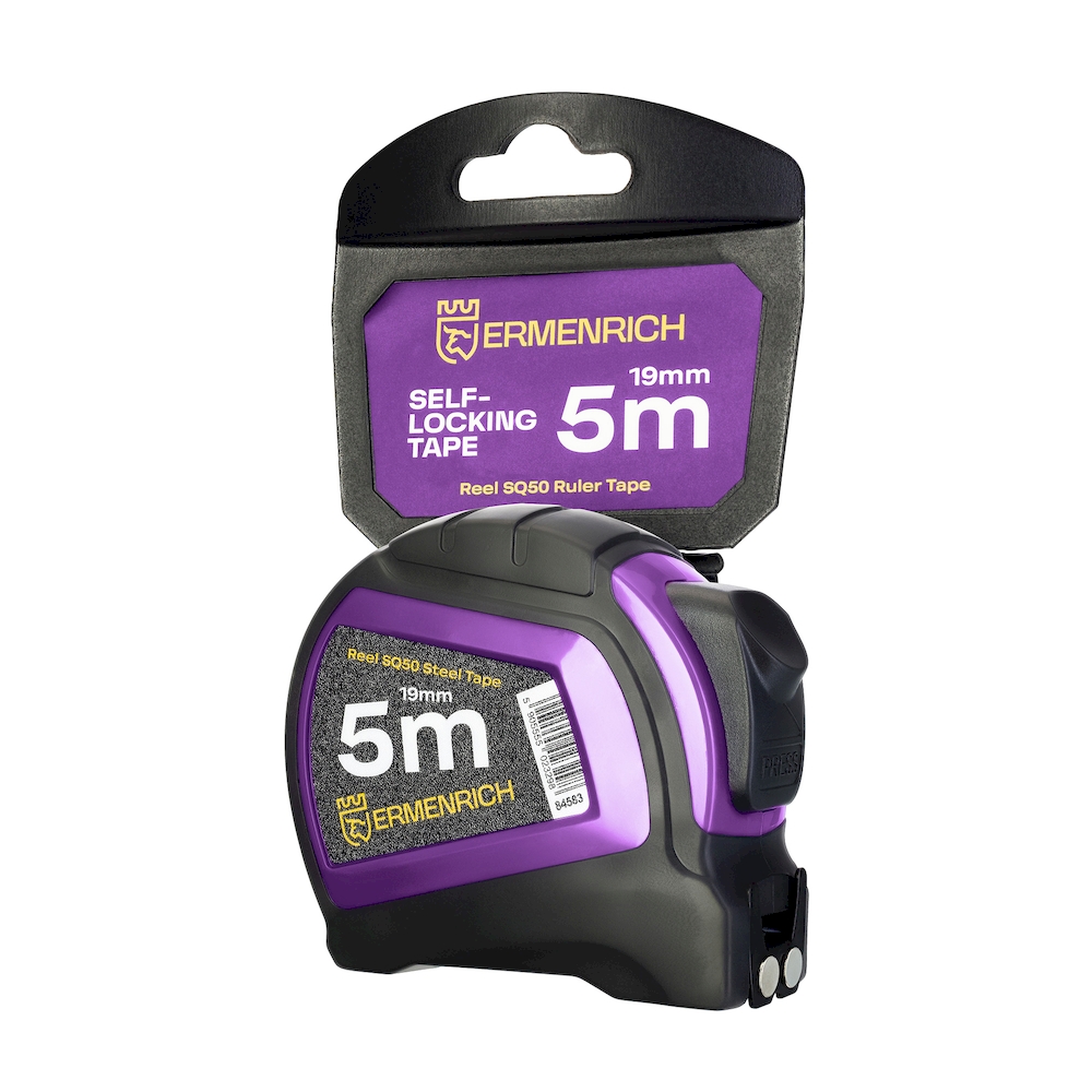 Измерительная рулетка Ermenrich Reel SQ50 — практичный и надёжный инструмент для повседневного использования как в быту, так и на профессиональной стройплощадке. Её 5-метровая лента из матовой стали позволяет легко выполнять замеры мебели, дверных и оконных проёмов, строительных материалов и других объектов среднего размера. Ширина полотна составляет 19 мм, что обеспечивает устойчивость при выдвижении и точность считывания показаний.