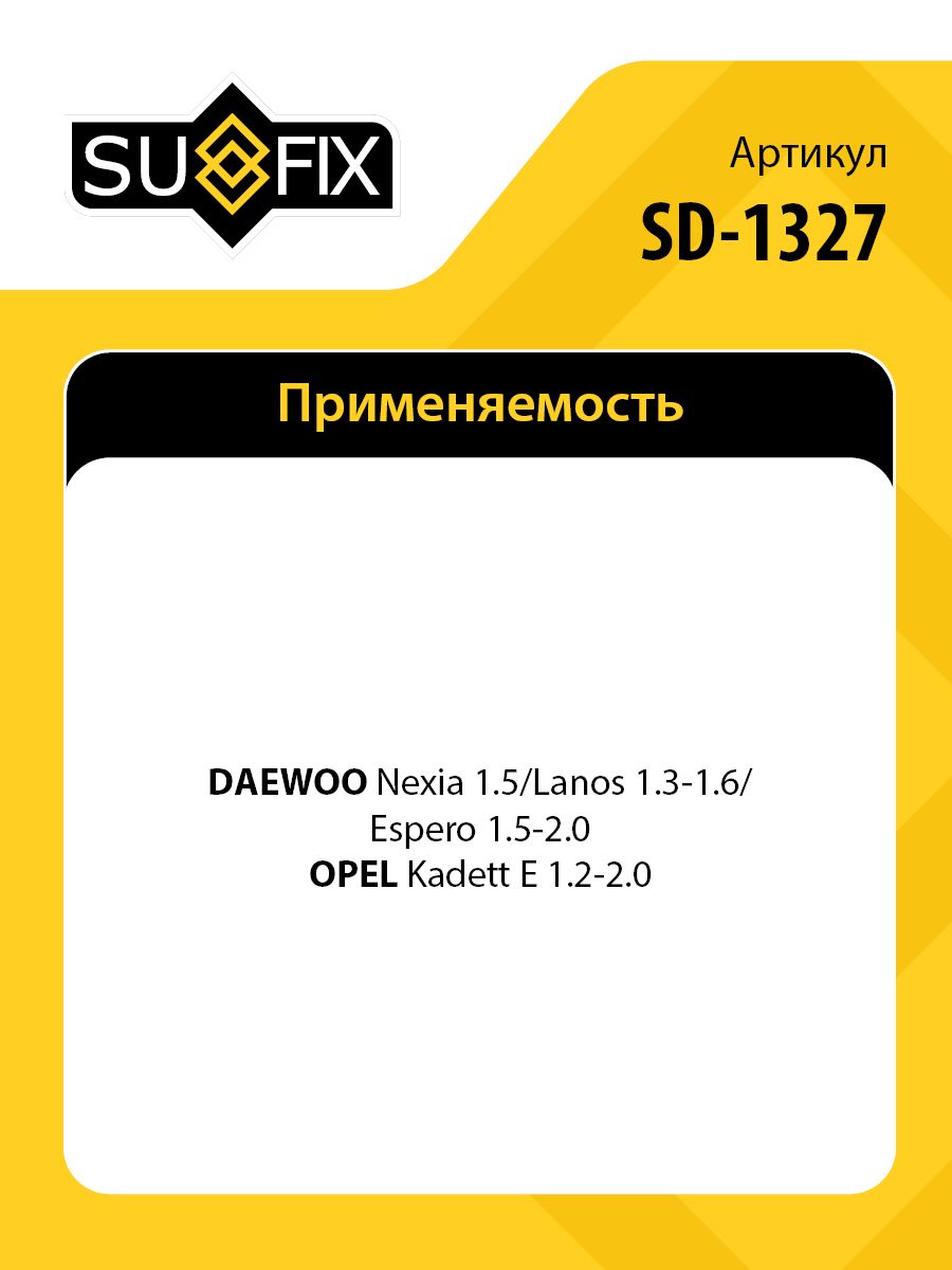 Рулевая тяга L SUFIX SD-1327. Применение: DAEWOO Nexia 1.5 95> / Lanos 1.3-1.6 97> / Espero 1.5-2.0 93-99, OPEL Kadett E 1.2-2.0 >91.