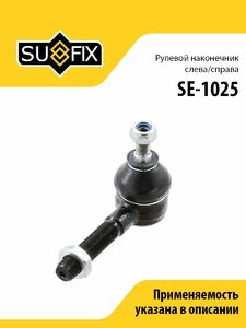 Рулевой наконечник L/R SUFIX SE-1025. Применение: CITROEN Berlingo 1.1-2.0D 96> / C4 1.4-2.0D 04> / Xsara 1.4-2.0D 97-05 / ZX 1.1-2.0 91-97, PEUGEOT 205 1.0-1.9 >94 / 306 1.1-2.0 94-01 / 307 1.4-2.0D 00> / 309 1.1-1.9 >93 / Partner 1.1-2.0D 96>.