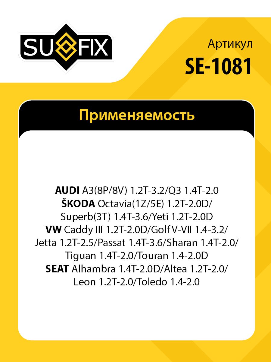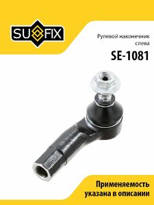 Рулевой наконечник L SUFIX SE-1081. Применение: AUDI A3(8P / 8V) 1.2T-3.2 03> / Q3 1.4T-2.0 11>, SKODA Octavia(1Z/5E) 1.2T-2.0D 04> / Superb(3T) 1.4T-3.6 08> / Yeti 1.2T-2.0D 09>, VW Caddy III 1.2T-2.0D 04> / Golf V-VII 1.4-3.2 03> / Jetta 1.2T-2.5 05> / Passat 1.4T-3.6 05> / Sharan 1.4T-2.0 10> / Tiguan 1.4T-2.0 07> / Touran 1.4-2.0D 03>, SEAT Alhambra 1.4T-2.0D 10> / Altea 1.2T-2.0 04> / Leon 1.2T-2.0 05> / Toledo 1.4-2.0 04-09.