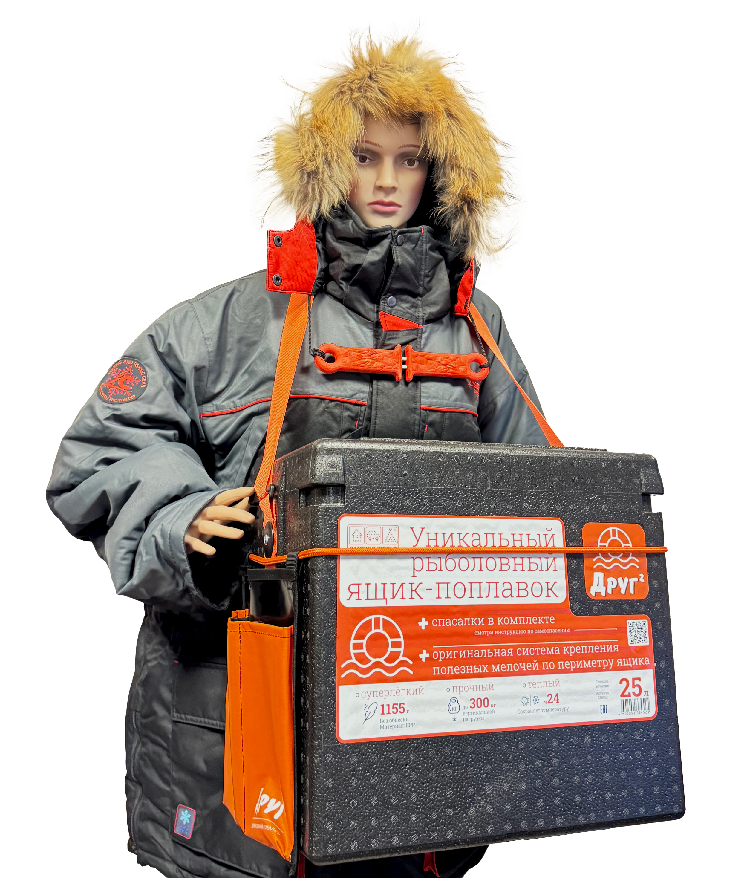 Проведенные командой МЧС испытания, показали, что рыболовный ящик «Друг» из ППС (пенополистирол) или EPP (Expanded Polypropylene или пенополипропилен) удерживает человека на плаву, даже будучи полностью заполненным водой!
