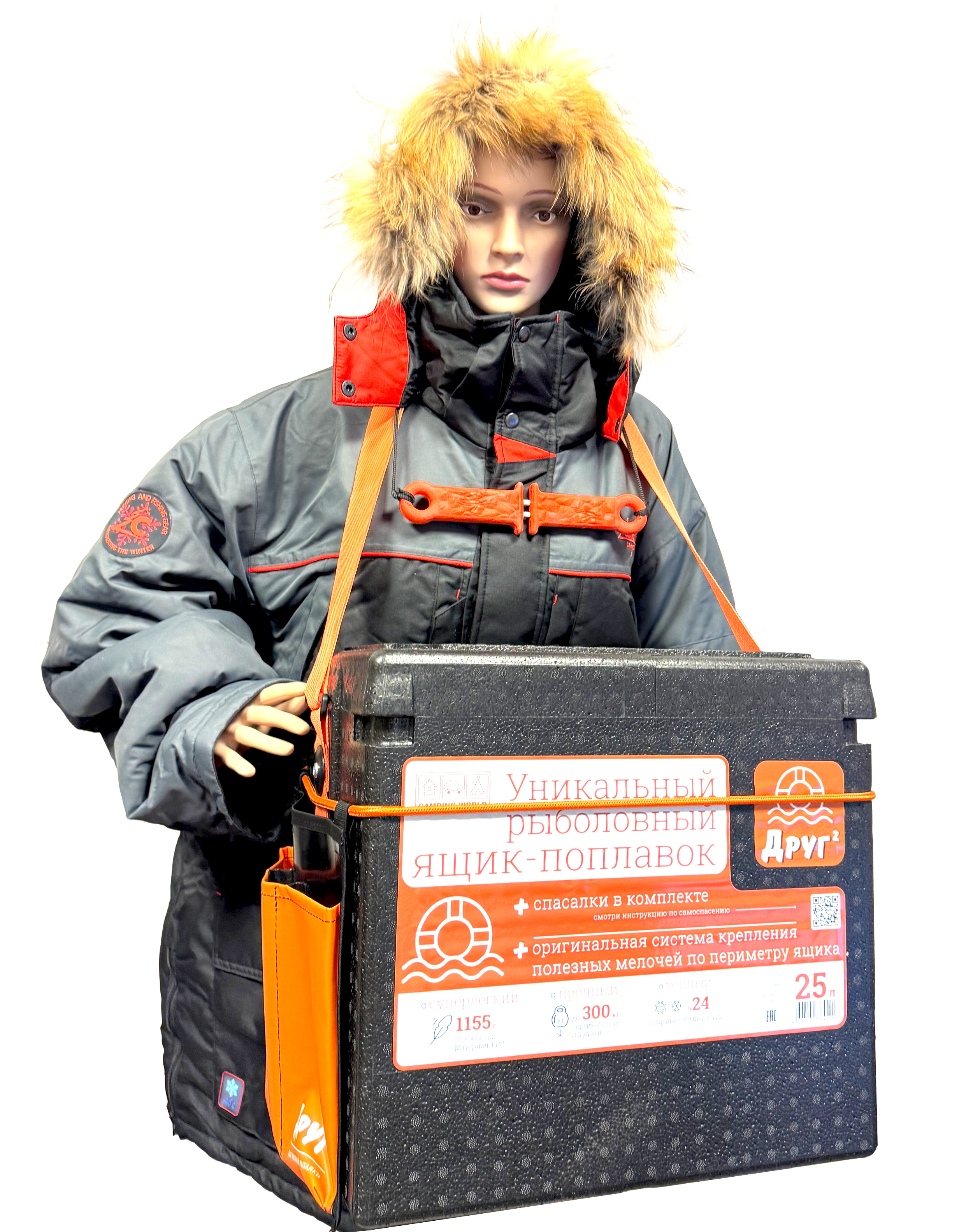 Проведенные командой МЧС испытания, показали, что рыболовный ящик «Друг» из ППС (пенополистирол) или EPP (Expanded Polypropylene или пенополипропилен) удерживает человека на плаву, даже будучи полностью заполненным водой!