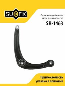 Рычаг нижний L / Перед. подв. SUFIX SH-1463. Применение: CITROEN C4 II 1.4-2.0D 09> / DS4 1.6D-2.0D 11>, PEUGEOT 308 1.4-2.0D 07> / 3008 1.6D-2.0D 09> / 5008 1.6-2.0D 09>.