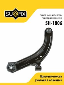 Рычаг нижний L / Перед. подв. SUFIX SH-1806. Применение: NISSAN Micra(K12) 1.0-1.6 03> / Note(E11) 1.4-1.6 06>.