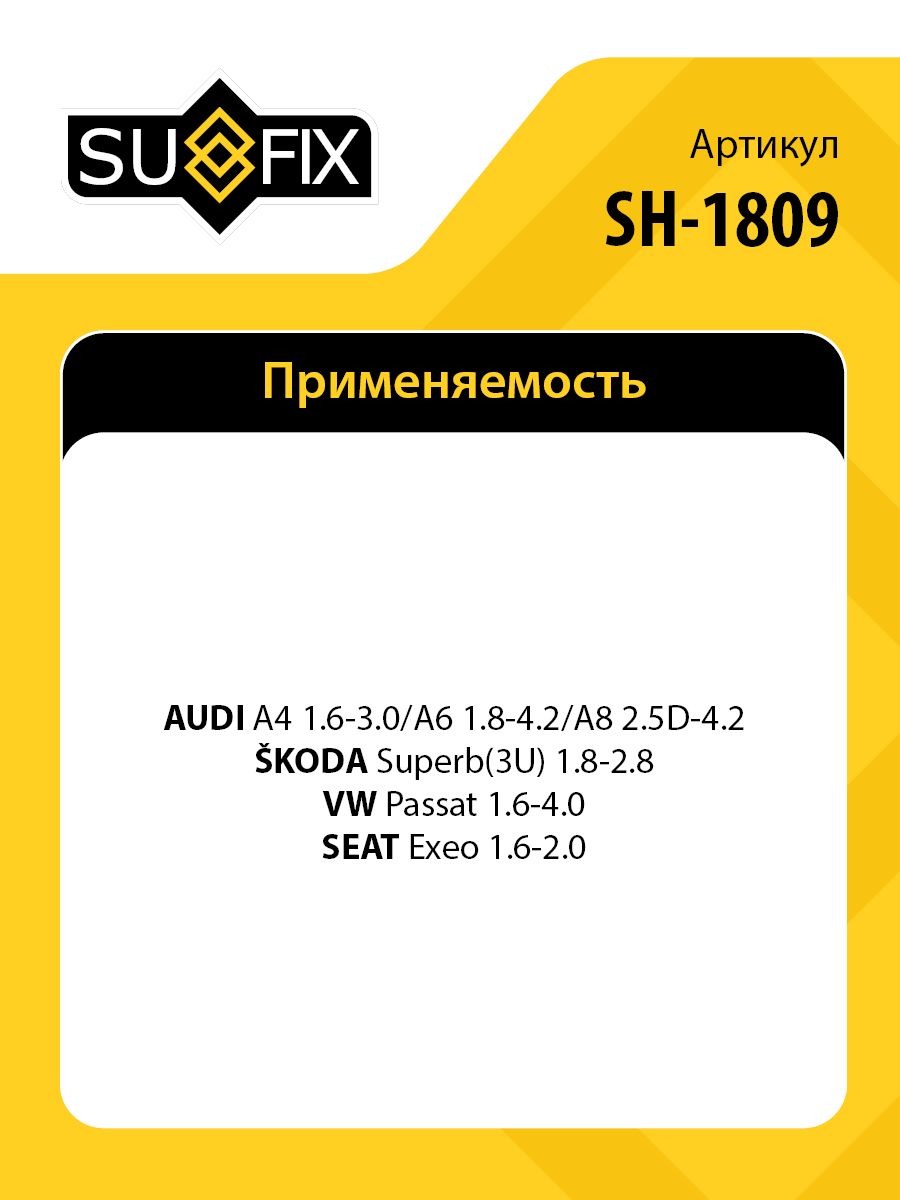 Рычаг нижний L / Перед. подв. SUFIX SH-1809. Применение: AUDI A4 1.6-3.0 94-04 / A6 1.8-4.2 97-05 / A8 2.5D-4.2 94-02, SKODA Superb(3U) 1.8-2.8 01-08, VW Passat 1.6-4.0 96-05, SEAT Exeo 1.6-2.0 08>.