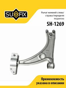 Рычаг нижний L/R / Перед. подв. SUFIX SH-1269. Применение: AUDI Q3 2.0D-2.0 11>, VW Passat 1.4T-3.6 05> / Sharan 1.4T-2.0 10> / Tiguan 1.4T-2.0 07>, SEAT Alhambra 1.4T-2.0 10>.