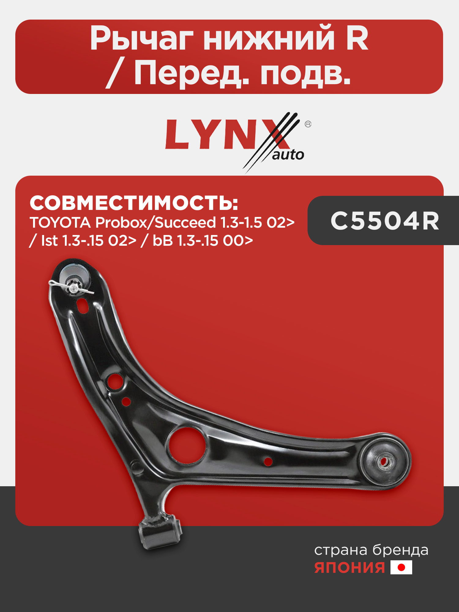Рычаг нижний R / Перед. подв. LYNXauto C5504R. Для: TOYOTA Тойота Probox/SucCeed(Сид) 1.3-1.5 02> / Ist 1.3-.15 02> / bB 1.3-.15 00>