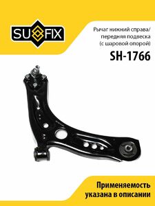 Рычаг нижний R / Перед. подв. (С шаровой опорой) SUFIX SH-1766. Применение: AUDI A3 12>, SKODA Octavia(5E) 12>, VW Golf VII 12>.