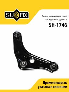 Рычаг нижний R / Перед. подв. SUFIX SH-1746. Применение: NISSAN Qashqai(J11) 1.2-2.0 13>.