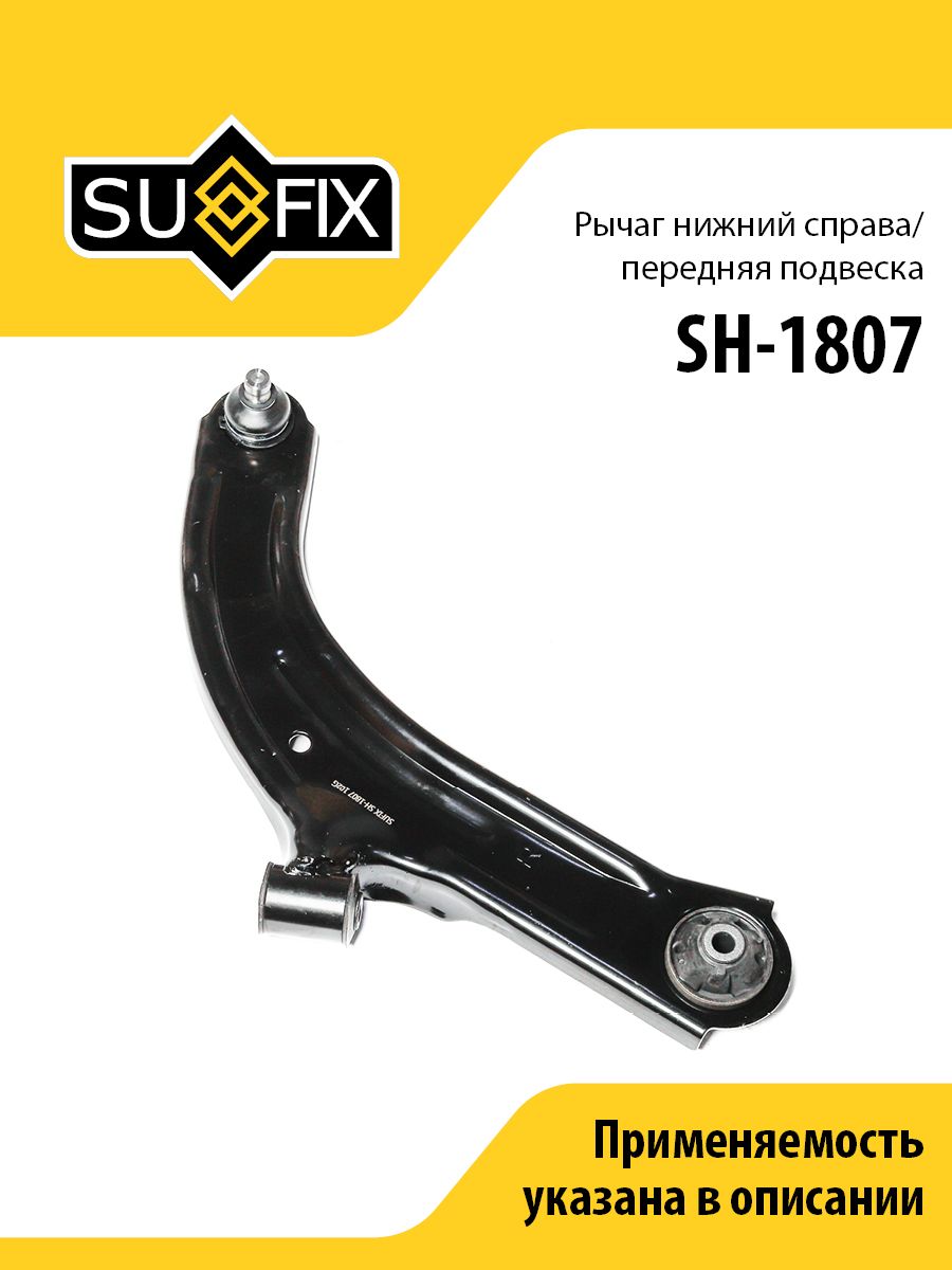 Рычаг нижний R / Перед. подв. SUFIX SH-1807. Применение: NISSAN Micra(K12) 1.0-1.6 03> / Note(E11) 1.4-1.6 06>.