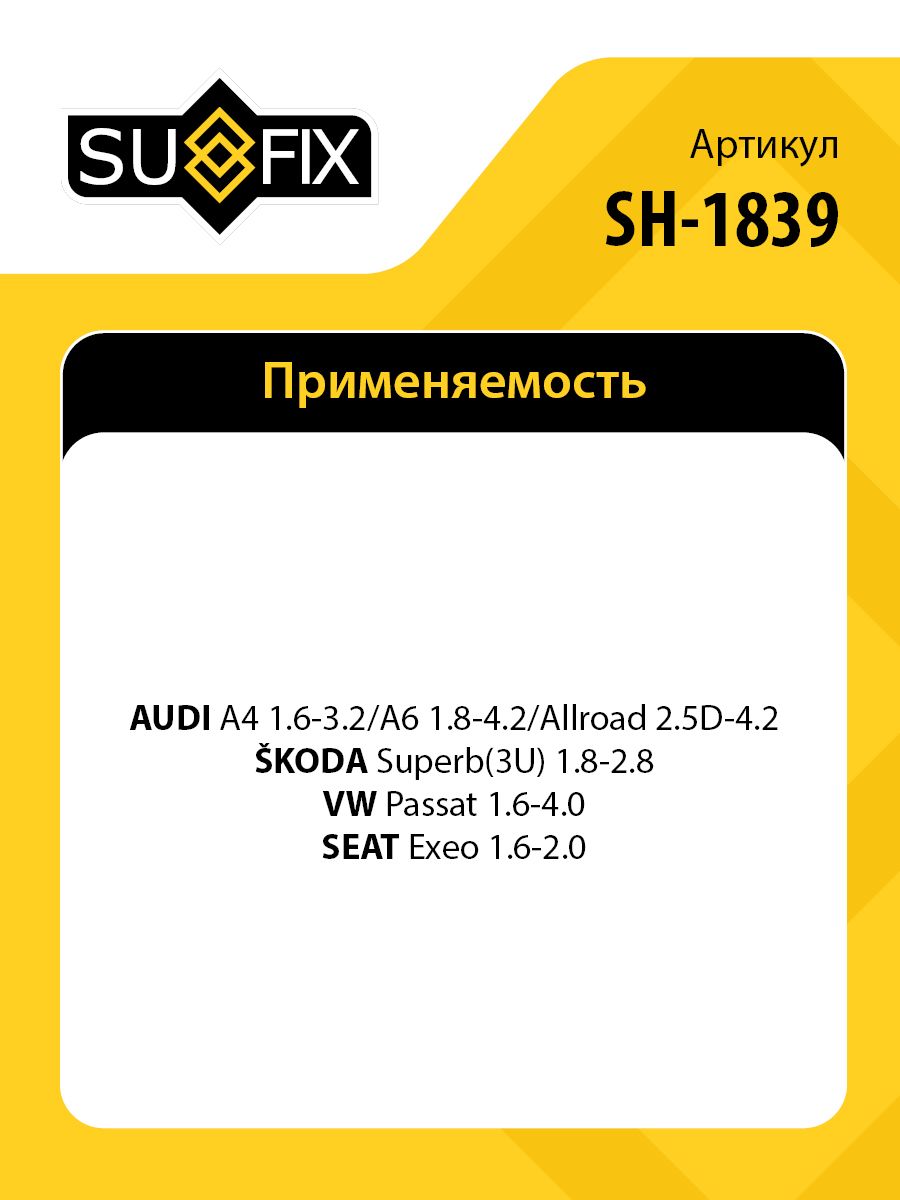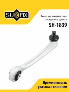 Рычаг верхний R / Перед. подв. SUFIX SH-1839. Применение: AUDI A4 1.6-3.2 94-08 / A6 1.8-4.2 97-05 / Allroad 2.5D-4.2 00-05, SKODA Superb(3U) 1.8-2.8 01-08, VW Passat 1.6-4.0 96-05, SEAT Exeo 1.6-2.0 08>.