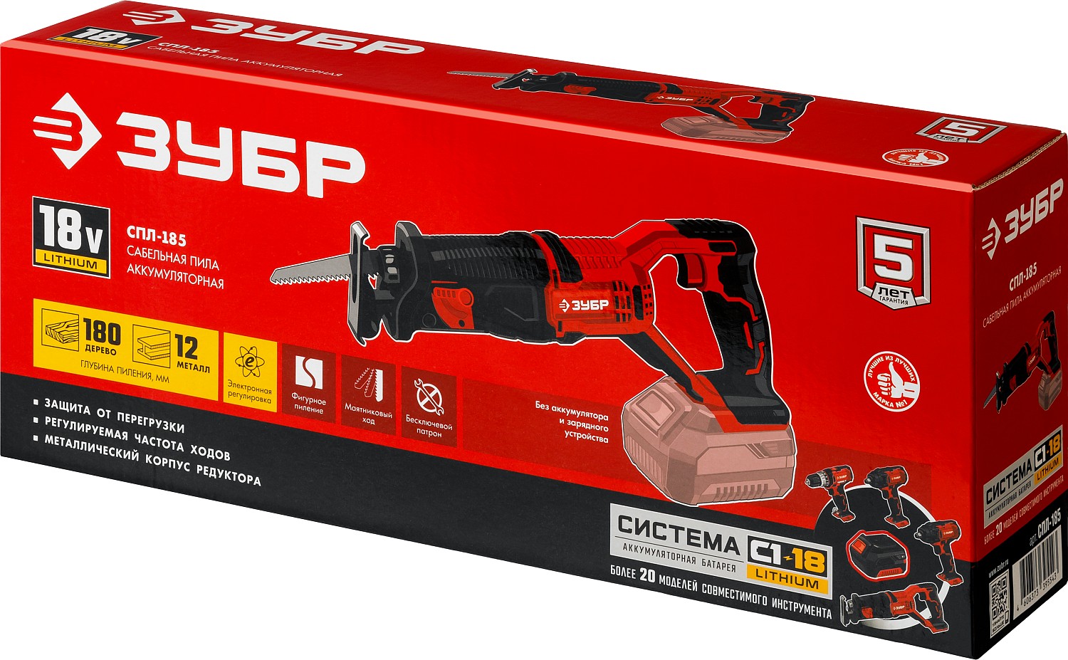 Сабельная пила ЗУБР С1-18, 18 В, 180 мм, без АКБ, (СПЛ-185)