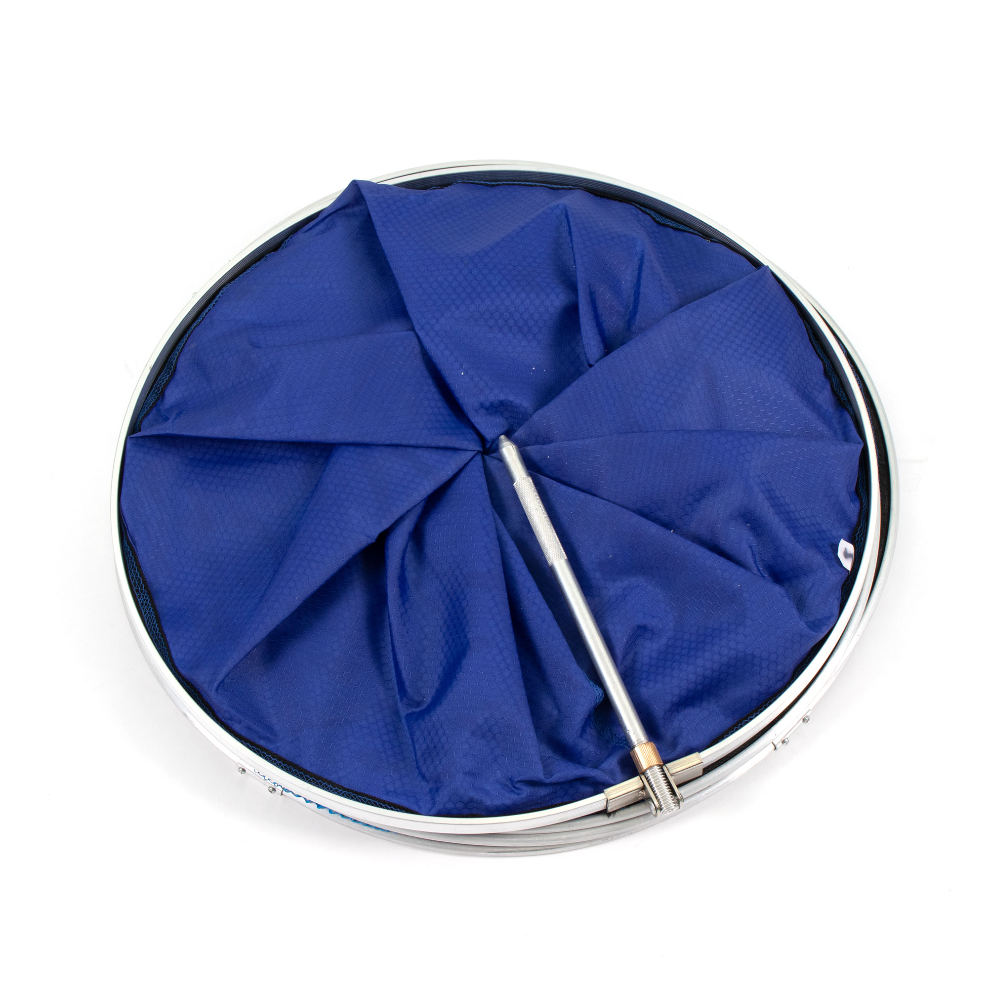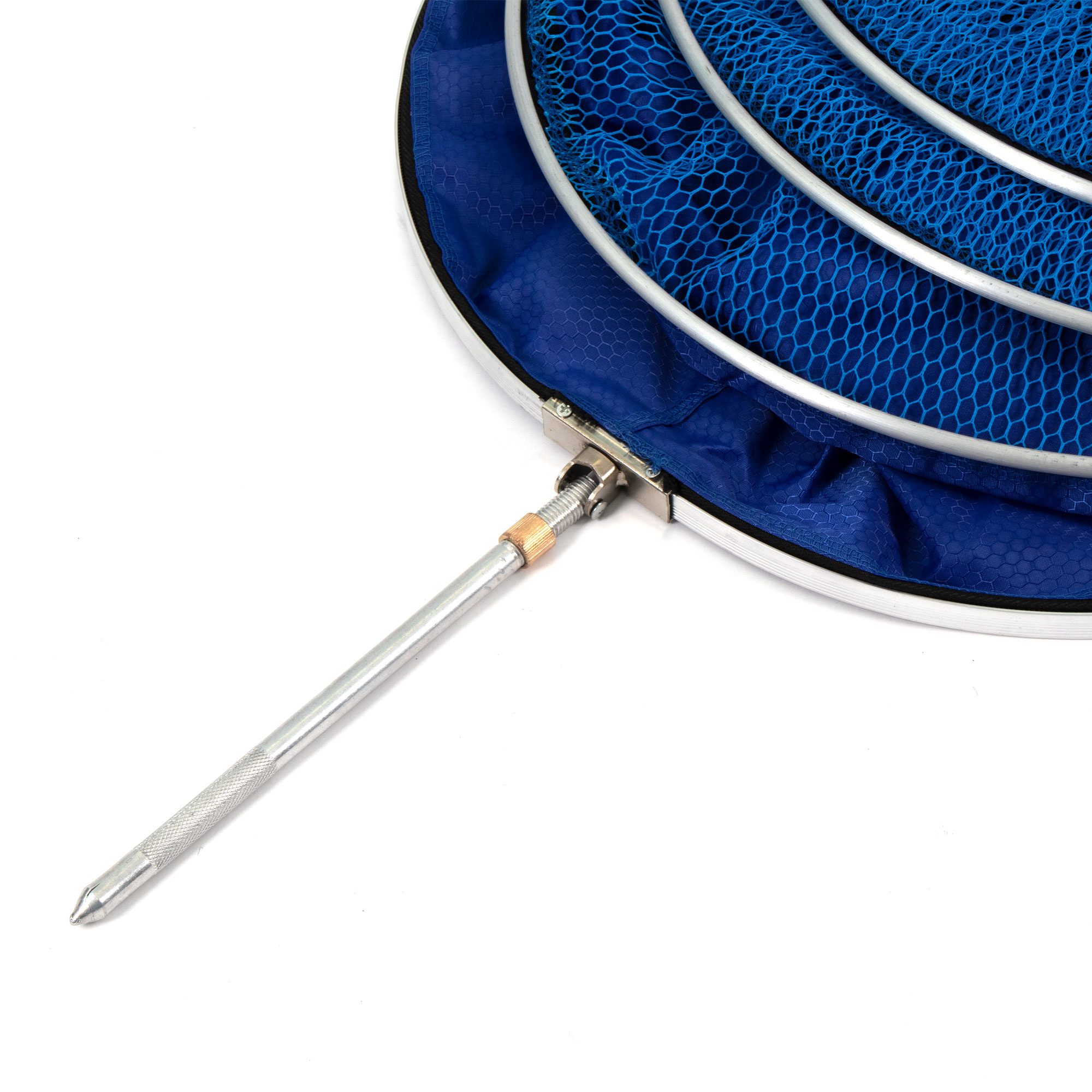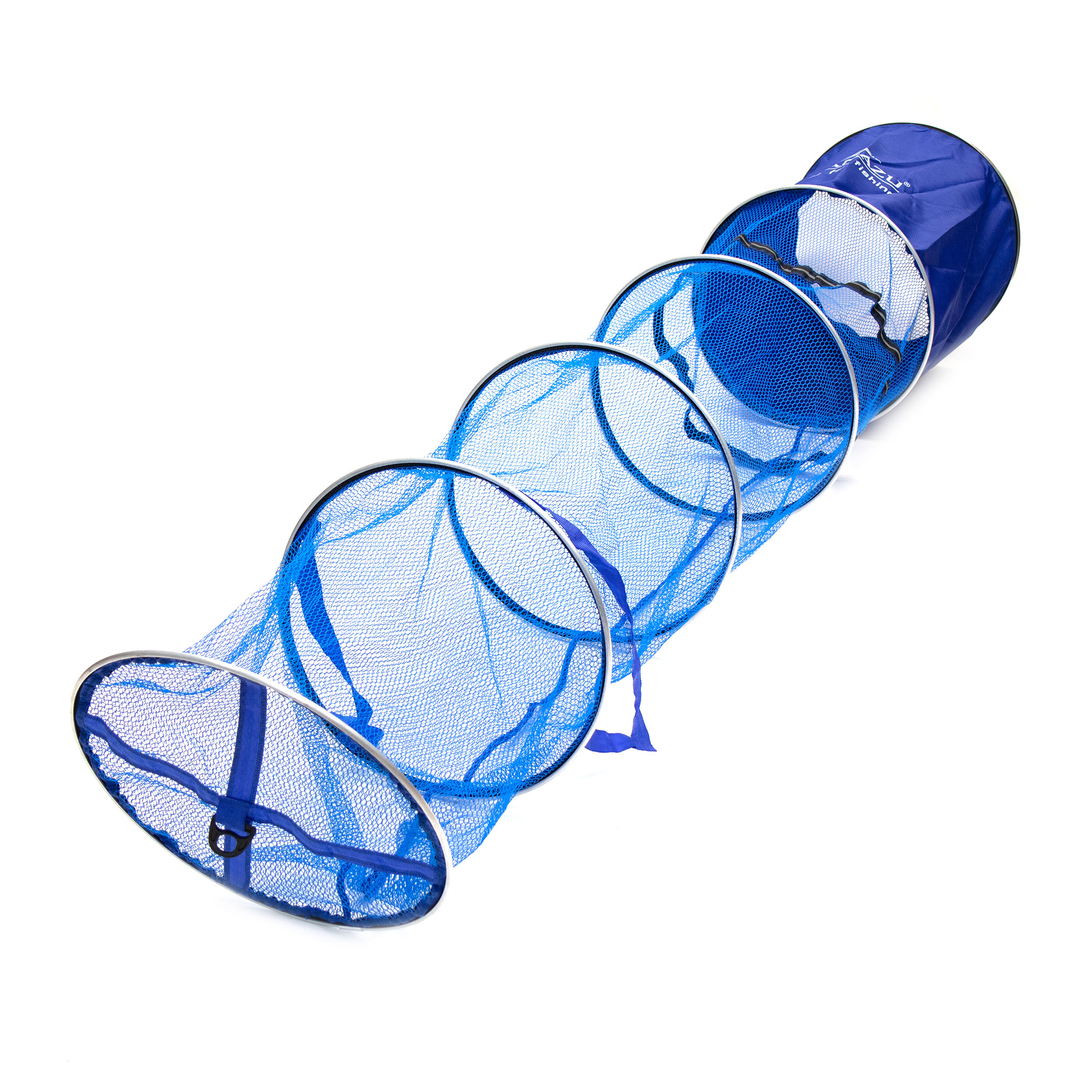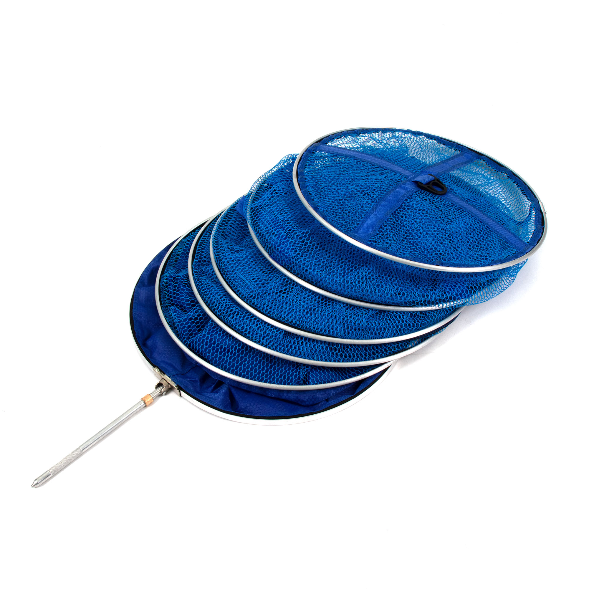 Садок изготовлен из нейлоновой нити с PVC-покрытием, что обеспечивает прочность, устойчивость к истиранию и долговечность в воде.