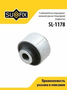 Сайлентблок передний/Нижн. рычаг/Перед. подв. SUFIX SL-1178. Применение: NISSAN Teana(J32) 2.0-3.5 08>/Murano(Z51) 3.5 07>/Juke 1.2-1.6 12>.