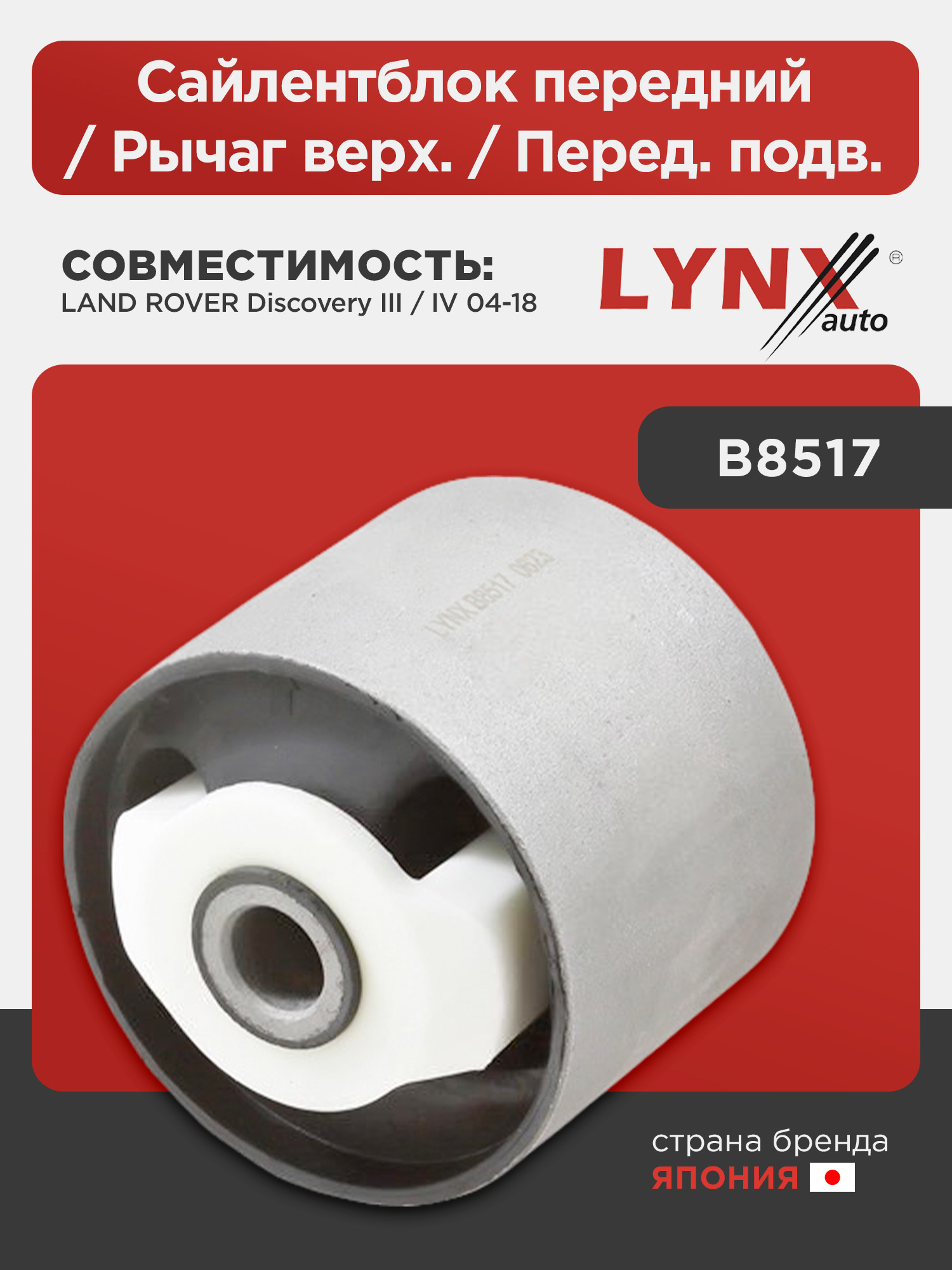 Сайлентблок передний / Рычаг верх. / Перед. подв. LYNXauto B8517. Для: LAND ROVER ЛЭНД РОВЕР Discovery(Дисковери) III / IV 04-18