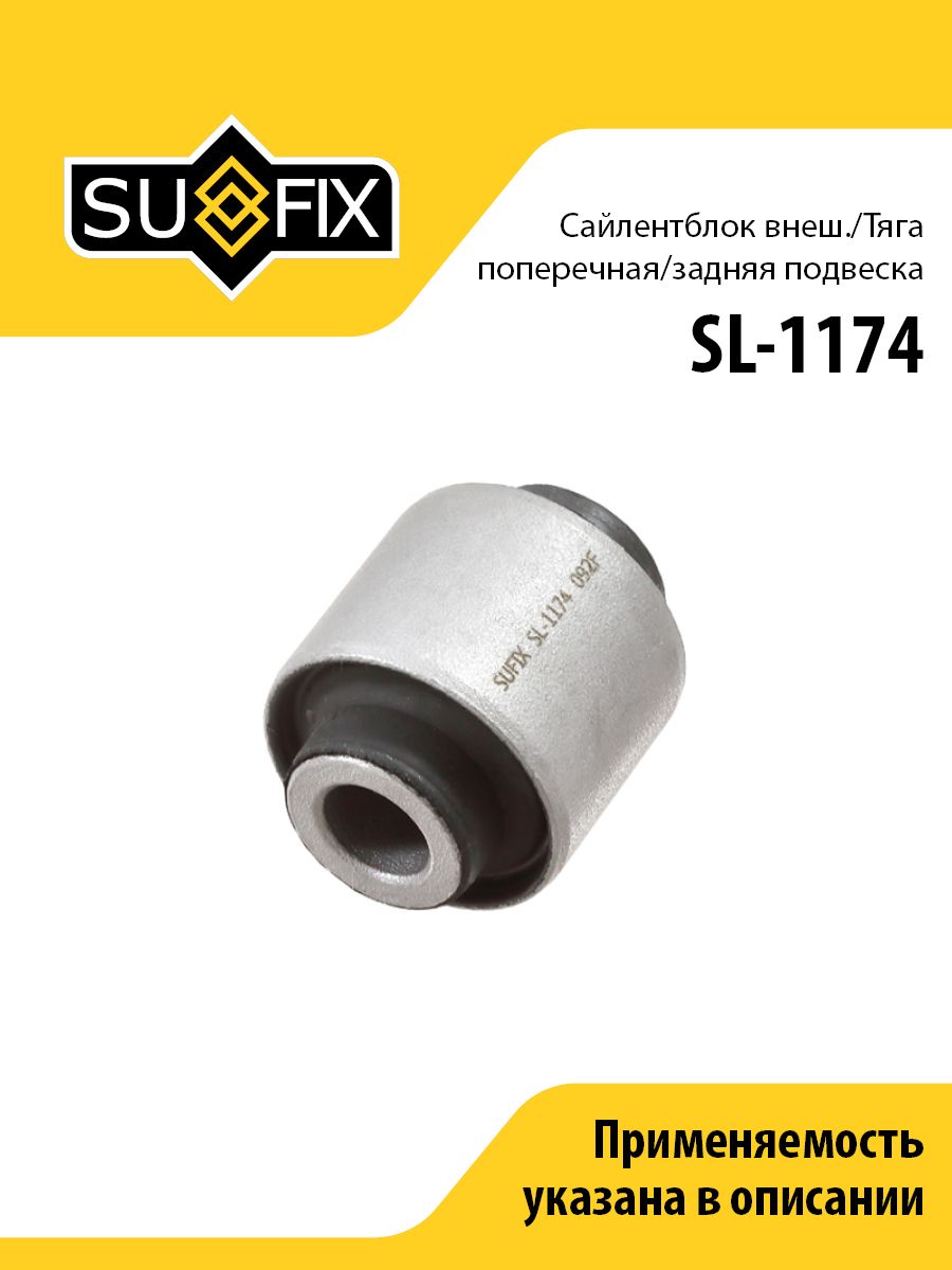 Сайлентблок внеш./Тяга попереч./Зад. подв. SUFIX SL-1174. Применение: MITSUBISHI Carisma 1.6-1.9D 95-06/Colt IV-V 1.3-1.8 92-03/Lancer V-VI 1.3-2.0D 92-03/Space Star 1.3-1.9D 98-04.