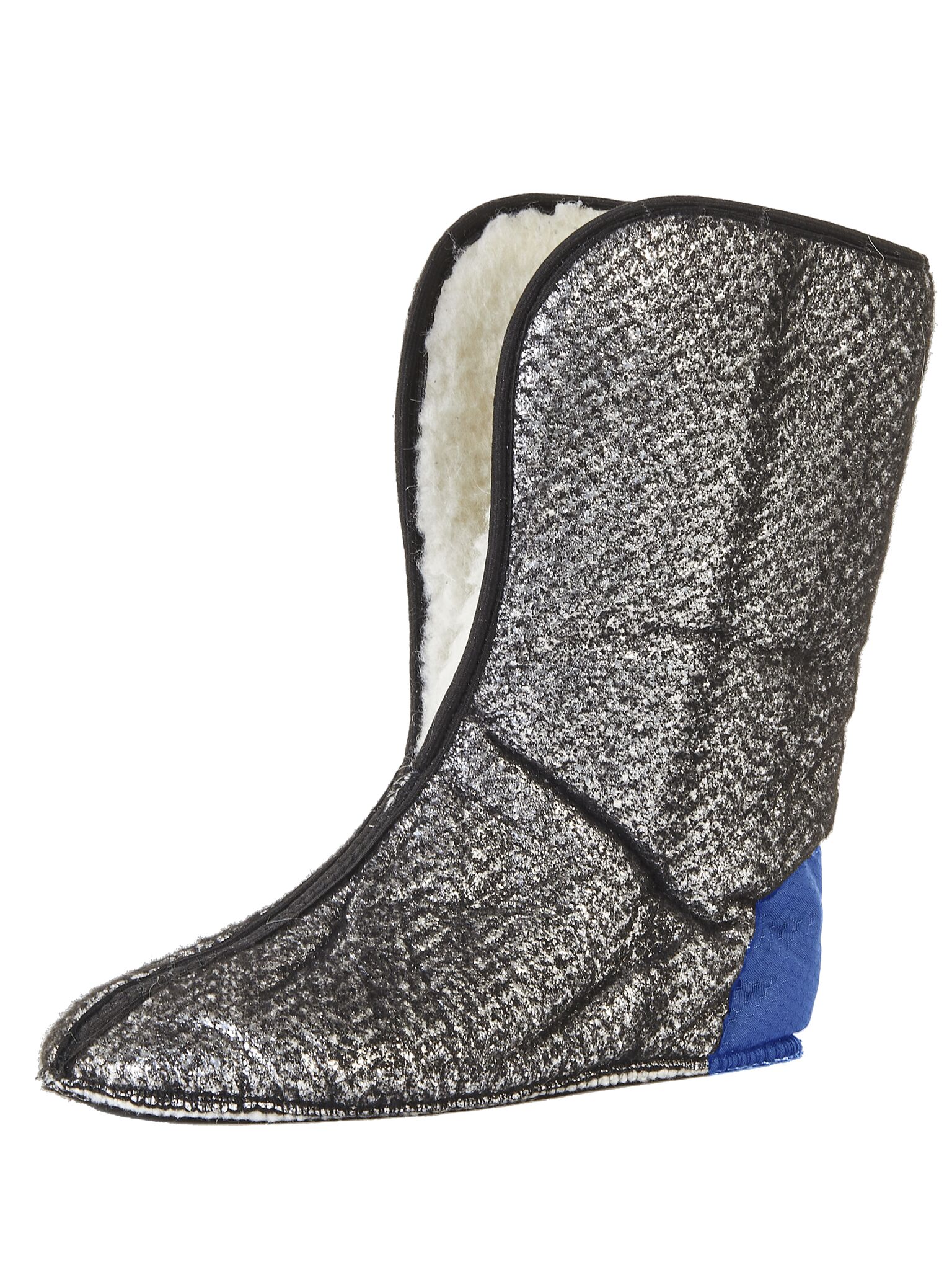 Сапоги изнутри имеют уникальную , не меющую аналогов, сеть канавок, которые позволяют вентилировать стопу и выводить лишнее тепло наружу. Увеличенная манжета служит дополнительной защитой от глубокого снега. В совокупности с вынимаемым вкладышем, обеспечивают термозащиту в динамике при температуре от –45°С до -55°С . Удобная амортизирующая колодка, позволяет преодолевать большие расстояния по снегу или льду с минимальными физическими затратами и нагрузками на суставы и позвоночник. Конструкция подошвы, без выраженного каблука, увеличивает сцепление и устойчивость на снегу и льду. Внутреннее строение подошвы имеет «вафельную структуру», позволяющая собирать конденсат с вкладыша, если он образовался. Пятислойный вкладыш, толщиной 20 мм, обеспечивает термоизоляцию и отвод влаги от тела. ‣ 70% искусственный мех, 30% натуральной овечьей шерсти – термозащита и отвод влаги от ног. ‣ Трикотажно-гидрофобное волокно – мембрана для отвода влаги. ‣ Нетканое полотно – сохраняет форму вкладыша. ‣ Металлизированная перфори