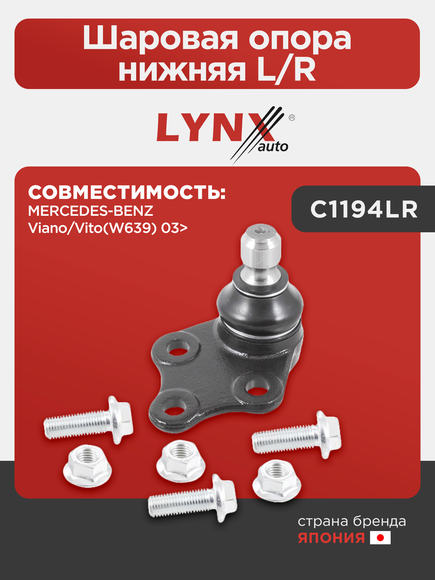 Шаровая опора нижняя L/R LYNXauto C1194LR. Для: Mercedes-Benz, Мерседес, Viano/Vito(Вито)(W639) 03>.