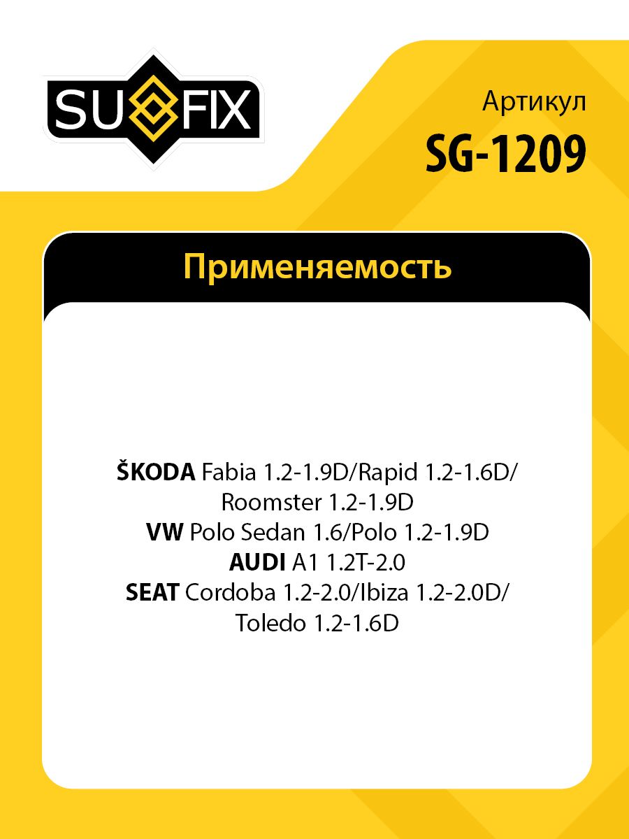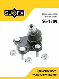 Шаровая опора нижняя L SUFIX SG-1209. Применение: SKODA Fabia 1.2-1.9D 07> / Rapid 1.2-1.6D 12> / Roomster 1.2-1.9D 06>, VW Polo Sedan 1.6 10> / Polo 1.2-1.9D 07>, AUDI A1 1.2T-2.0 10>, SEAT Cordoba 1.2-2.0 02-09 / Ibiza 1.2-2.0D 08> / Toledo 1.2-1.6D 12>.