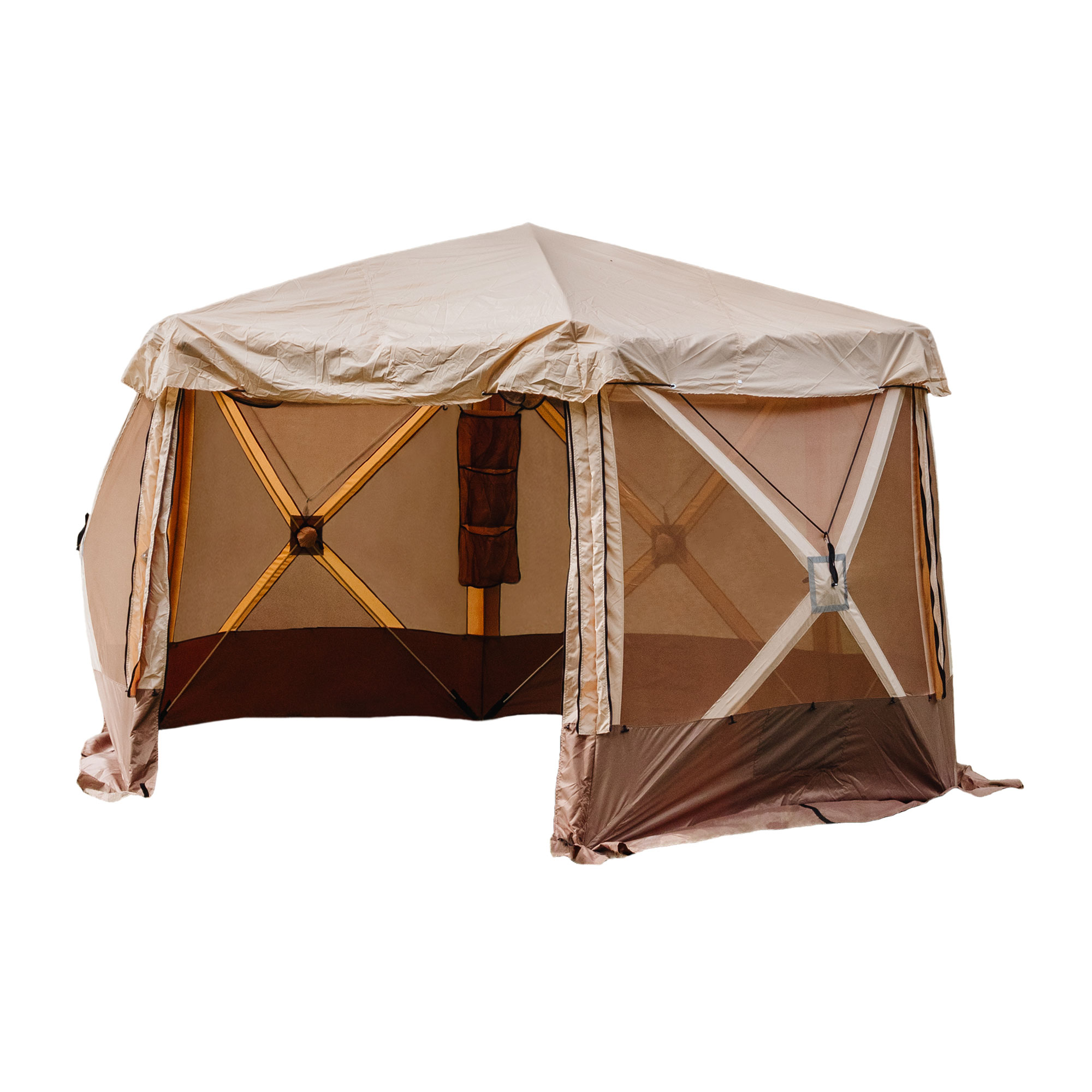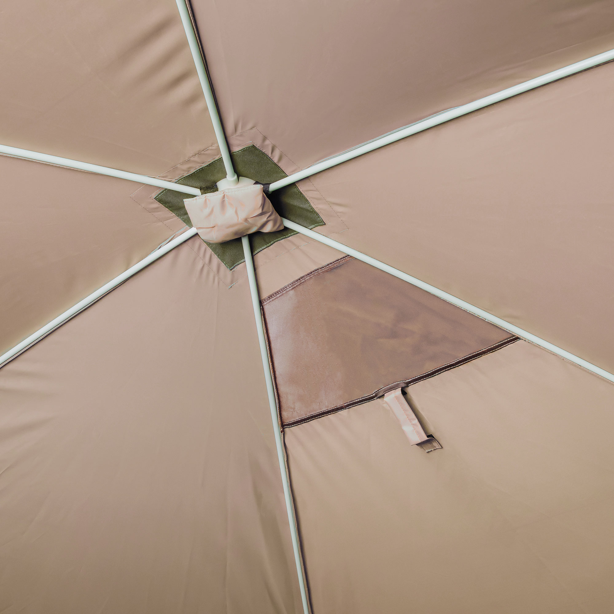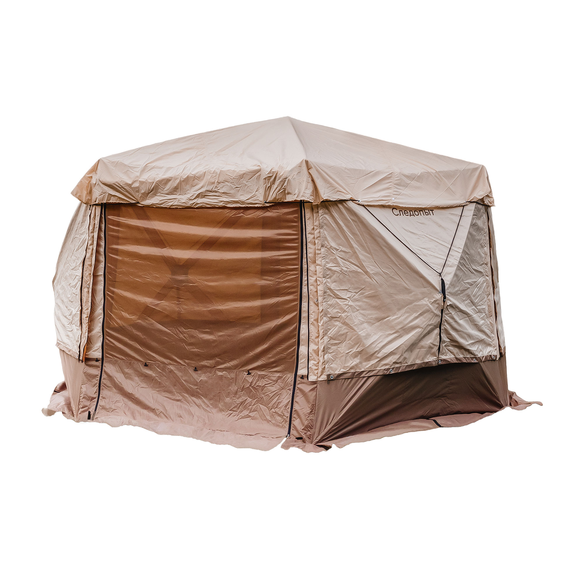 Шатер СЛЕДОПЫТ быстросборный, 6 стен, 3,35х3,85 м, h-2,25 м, S по полу 9,3 кв.м, цв. SANDSTORM
