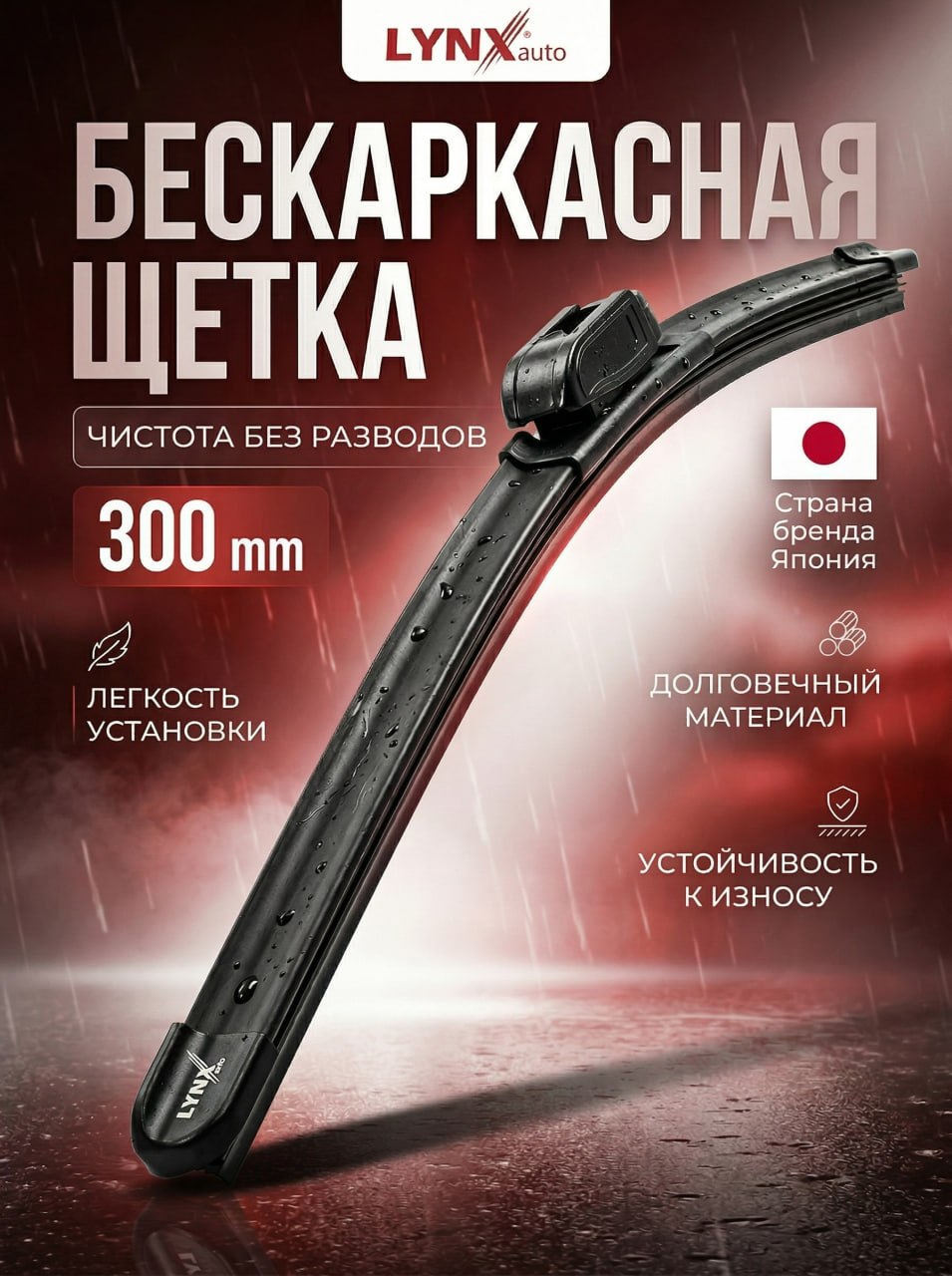 Щетка стеклоочистителя бескаркасная, 300мм (hook) LYNXauto XF300. Применение: 300 mm