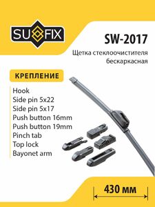 Щетка стеклоочистителя бескаркасная, 430мм SUFIX SW-2017.