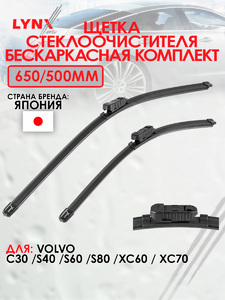 Щетка стеклоочистителя бескаркасная, комплект 650/500мм LYNXauto XF6550P. Для VOLVO Вольво C30 06-12/S40 II 04>/S60 II 10>/S80 II 06>/XC60 I 08>/XC70 II 07>