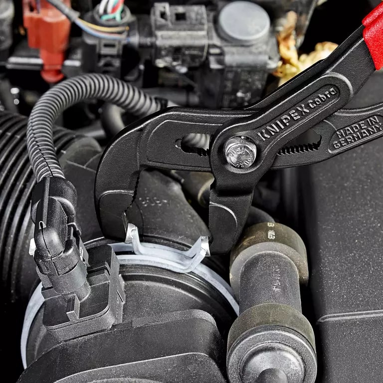 щипцы для пружинных хомутов универсальные поворотные захваты для надежной фиксации хомута в любом положении. Захваты могут поворачиваться даже под нагрузкой. очень хорошая передача усилий, что позволяет разжимать хомуты просто, уверенно и без особых усилий. Вытянутая узкая головка, поворотные захваты: идеальный инструмент для работы в стесненных условиях. дополнительная функция: бережное отсоединение шлангов с помощью захватного зева с насечкой. Механизм ускоренной перестановки Quick-Set: регулировка путем смыкания губок прямо на детали.