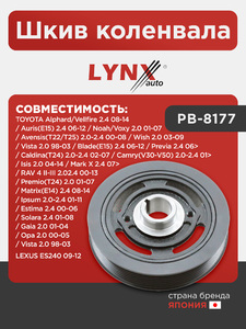Шкив коленвала LYNXauto PB-8177. Для: Lexus, Лексус, ES240 09-12, Toyota, Тойота, Alphard/Vellfire 2.4 08-14 / Auris(E15) 2.4 06-12 / Avensis(Авенсис)(T22/T25) 2.0-2.4 00-08 / Wish 2.0 03-09.