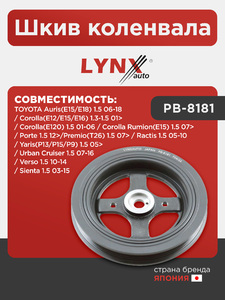 Шкив коленвала LYNXauto PB-8181. Для TOYOTA Тойота Auris(E15/E18) 1.5 06-18/Corolla(Королла)(E120) 1.5 01-06/Corolla(Королла) Rumion(E15) 1.5 07>/Corolla(Королла)(E12/E15/E16) 1.3-1.5 01>/Porte 1.5 12>/Premio(T26) 1.5 07>/Ractis 1.5 05-10/Sienta 1.5 03-15