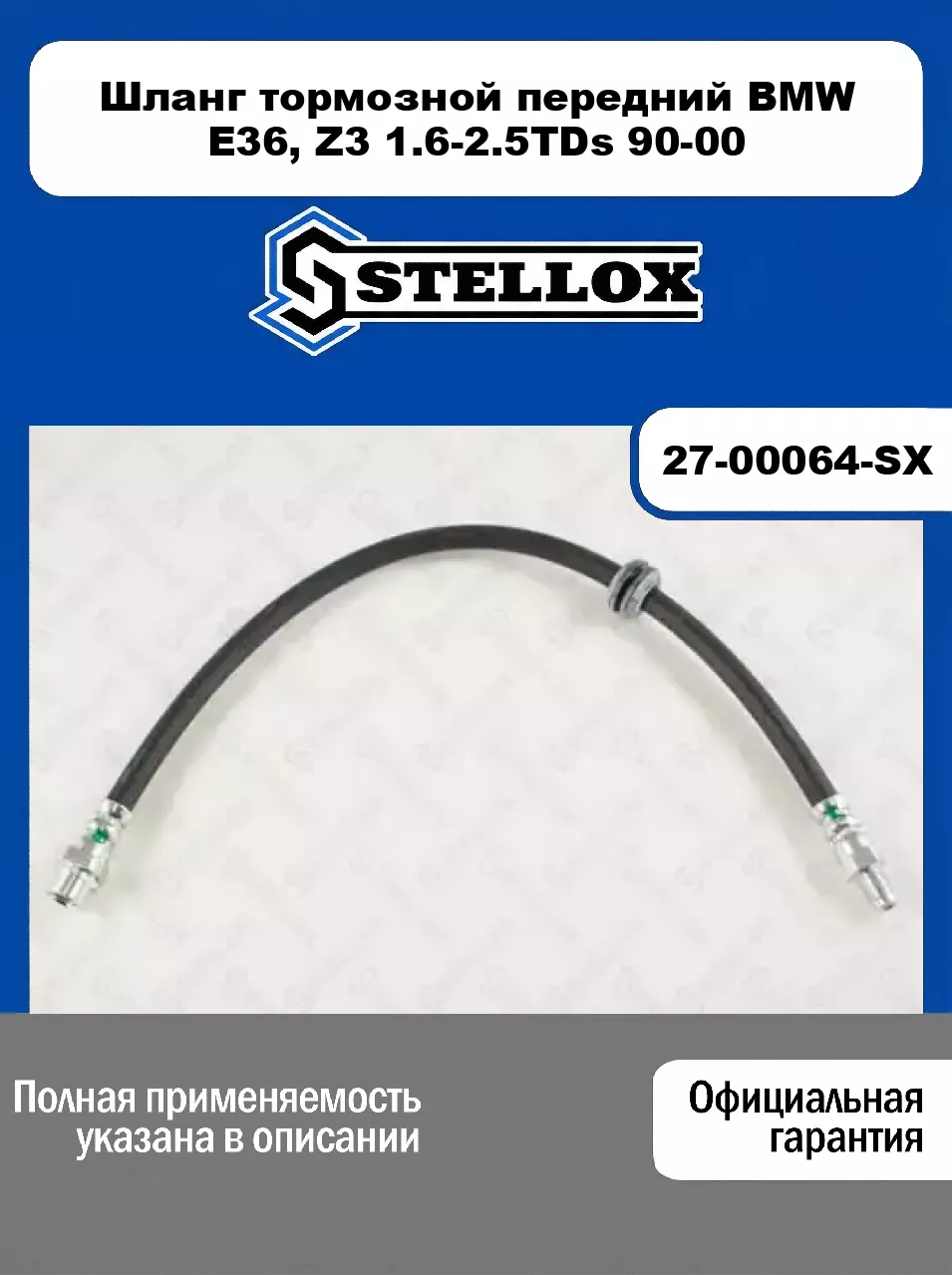 Шланг тормозной передний BMW E36, Z3 1.6-2.5TDs 90-00 27-00064-SX