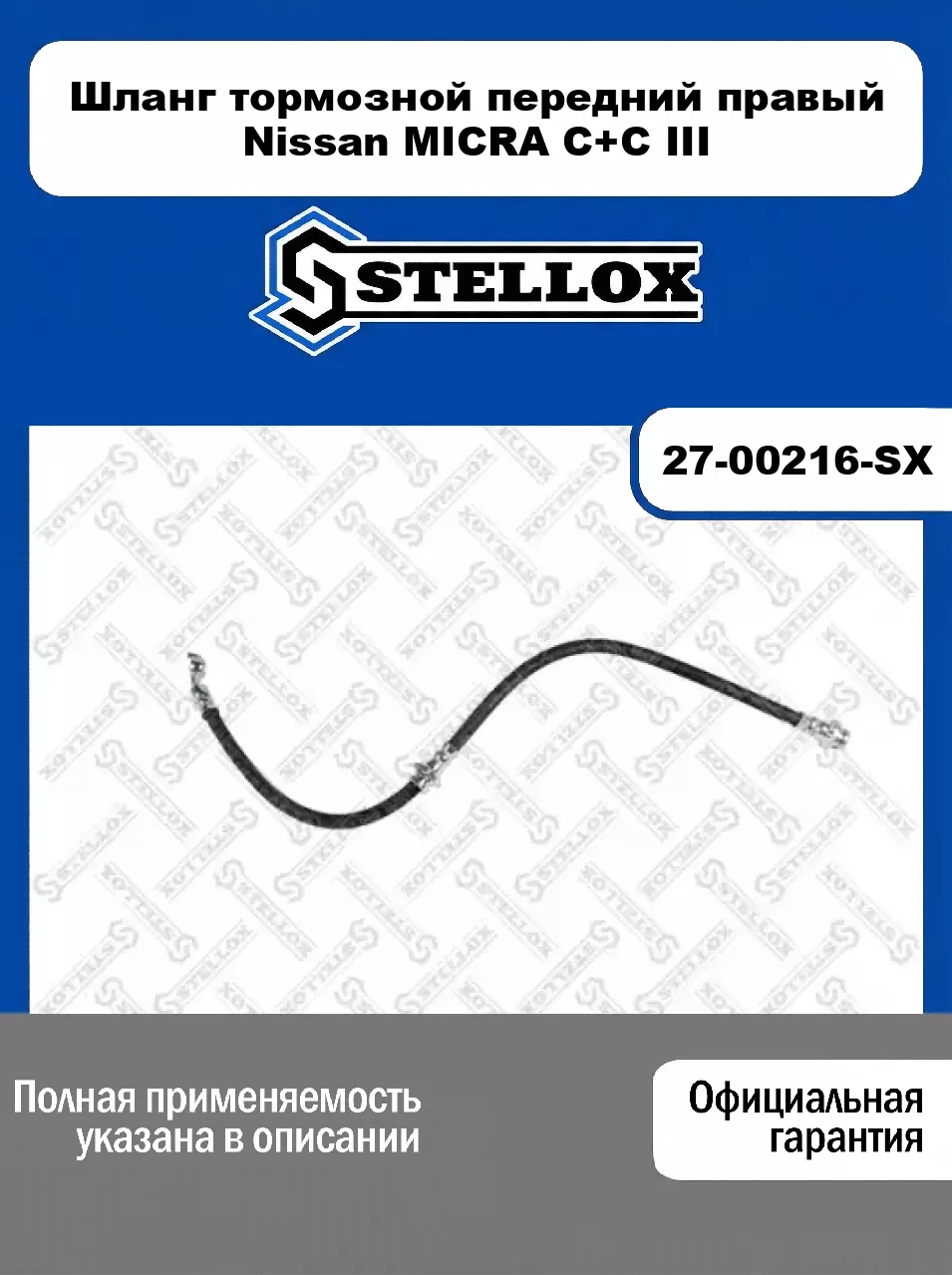Шланг тормозной передний правый Nissan MICRA C+C III 27-00216-SX