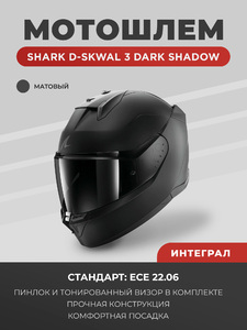 Шлем Shark D-SKWAL 3 DARK SHADOW EDITION MAT Black XXL (матовый)